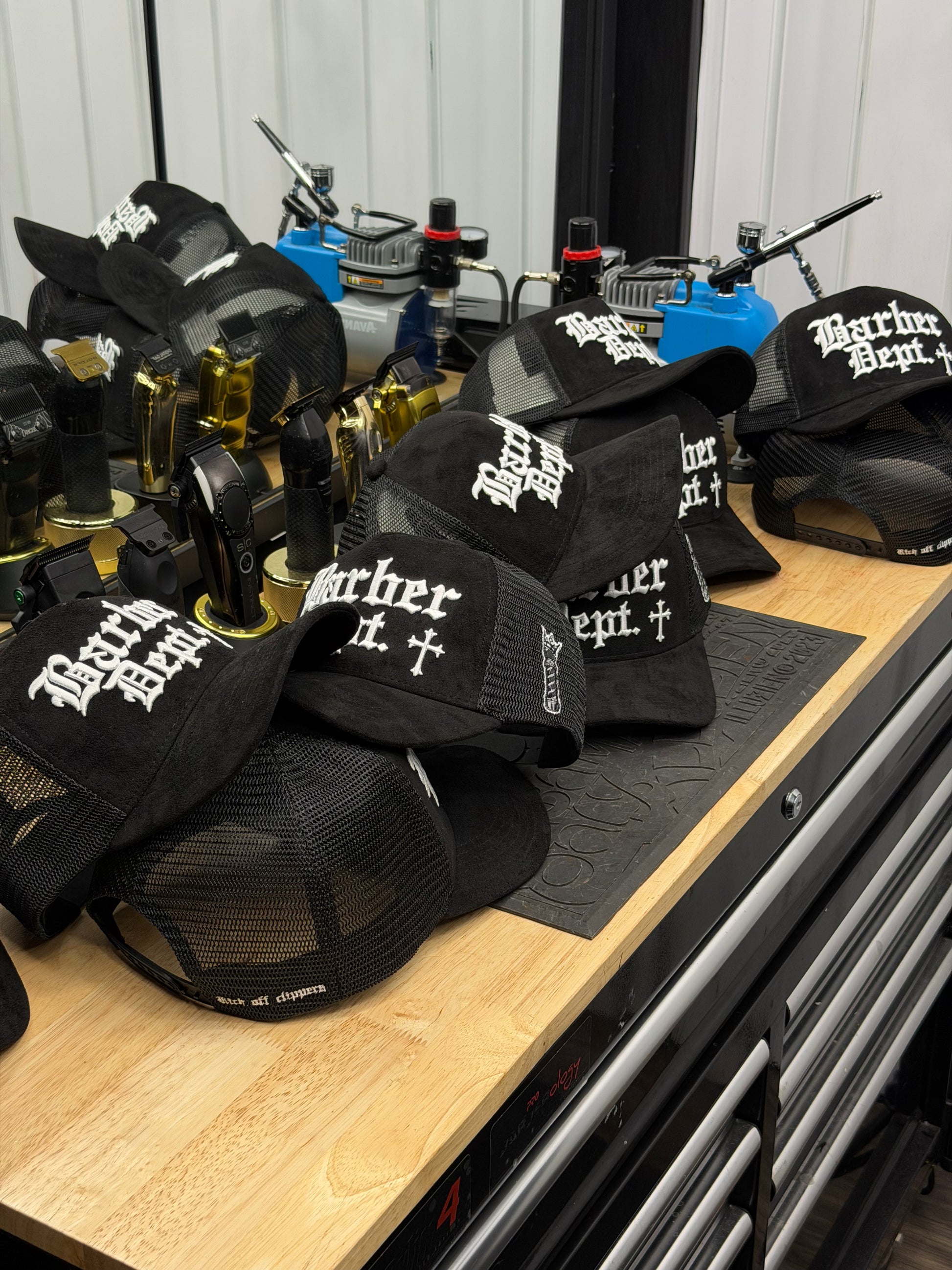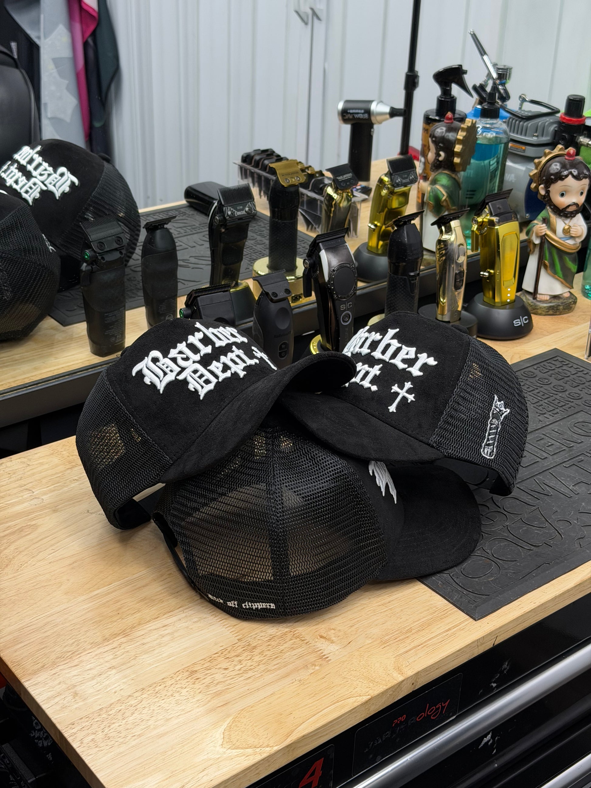 The perfect hat for barbers. This High quality SnapBack hat designed for barbers consist of suede fabric along the front section of the hat, with an embroidered design made to stand out among other hats.